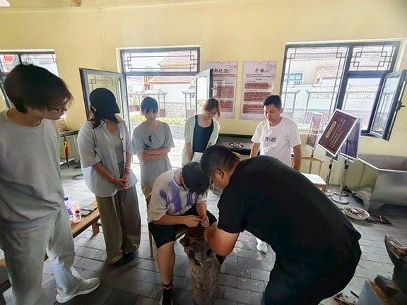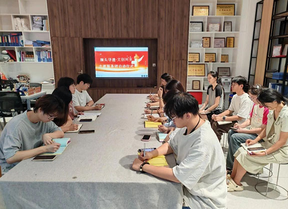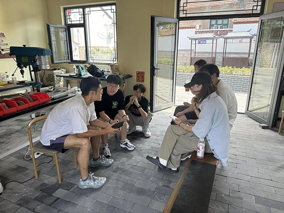 7月11日下午,在褚丁庆老师的带领下,团队一行踏着夏日的热忱,前往济南市钢城区澜头村。到达目的地后,钢城区团区委领导热情迎接,并与济南鲸喜有限公司总经理贾子龙召开社会实践部署会。贾老师的详细讲解让大家对澜头村的非遗传承和历史文脉又有了进一步的了解。会上同学们逐一进行了自我介绍,分享着各自的专业所长与实践期待。大家依托自己的专业优势和兴趣,自发组织形成了室内外设计组、文创产品设计组、实践报告组与摄影剪辑组四个职责分明的小组,带着对实践活动的憧憬,正式开启了为期四天的社会实践之旅。
