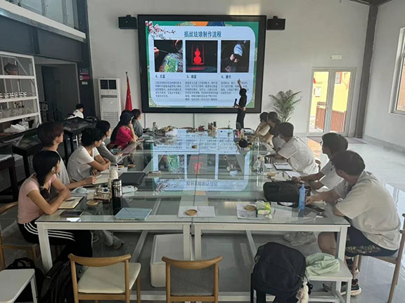 期间,贾子龙老师为成员们生动讲解了“之间造物”品牌的创立故事与其独特的发展理念——该品牌以传统手工艺与现代设计相融合为核心驱动力,在深入理解传统手工艺精髓的基础上结合现代设计的思维赋予其传统手工艺新的生命活力。老师提到,“之间造物”品牌始终坚持“设计赋能乡村”的初心,强调回归生活本源,从人们的日常生活需求中不断汲取灵感,打造兼具实用与美学价值的产品,继承传统、不断创新,传递中国传统文化。
