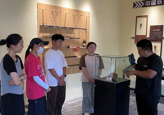 (图为亓振老师为实践团队成员讲解铁艺发展历史)