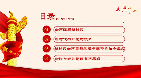 本次主题团课首先围绕“什么是新时代”、“新时代共产党的使命”、“如何坚持和发展中国特色社会主义”、“新时代党的建设有何要求”等问题展开,带领大家共同解读习近平新时代中国特色社会主义思想的内在逻辑,正确理解新时代的内涵与意义。