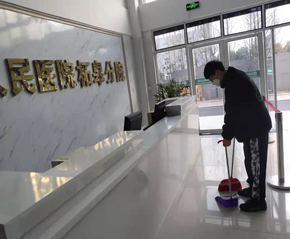 第四天的时候,因为住院部人流量变大,住院部的一楼大厅有很多垃圾,所以我就拎起扫帚变成了清洁工。