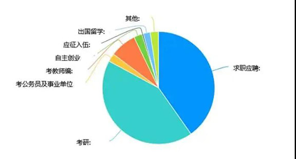 根据统计结果可以看出,关于毕业的去向安排,其中占比较大的选项为考研和求职应聘,其次是考教师编、考公务员及事业单位、自主创业。我们将对不同毕业发展去向进行总结,提供最中肯的建议,加强分类指导,让毕业不再迷茫,让青春散发光芒。