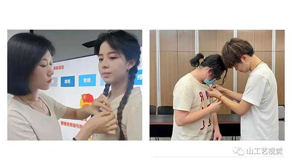 宣誓后,团总支委员为大家颁发团徽,大家相互佩戴团徽。