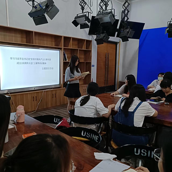 同时,我院各团支部组织学生集体收看习近平总书记在庆祝建团一百周年大会发表重要讲话的视频,由各团支书领读、团员青年们现场集体学习讲话原文内容。同学们依次上台分享学习感悟,以座谈会的形式围绕“作为新时代的团员青年,我们该如何行动”为话题展开讨论。最后,各班团支书围绕本次活动进行总结发言,号召团员青年们努力学习,贡献力量,以昂扬的姿态迎接党的二十大。