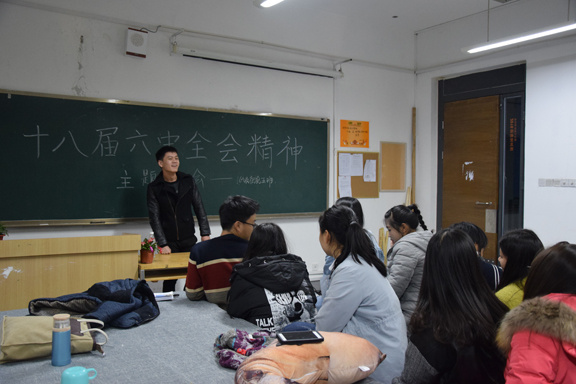 为了提高大学生思想素质,提高广大青年团员的政治素养,全面贯彻落实党的十八届六中全会精神,11月14日,作为2016级新生团课的重要内容之一,视觉传达设计学院组织青年学生开展主题团日活动,积极学习“十八届六中全会精神”。视觉传达设计学院学生党员深入学生班级,引领学生开展了学习活动。