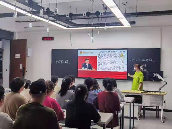 各团支部结合工作实际,以“开学第一课”的方式,采取多种形式,面向全体学生全覆盖式开展。团课内容主要分为三个板块:一是深学细悟习近平总书记在庆祝中国共产主义青年团成立 100 周年大会上的重要讲话精神;二是学习习近平总书记《论党的青年工作》座谈会;三是深入开展国情省情教育。深刻领会习近平总书记对共青团提出的“五个模范,五个带头。”