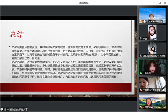 此次活动开展也是让我们更好的认识到了我们艺术工作者可以为社会为党为国家做出哪些贡献,提供了多个角度。通过参加本次暑期社会实践活动,丰富了队员们的实践经验,提高了团队合作能力,队员们更加深入了解社会,这次实践活动意义深远,对大家的帮助受用一生。