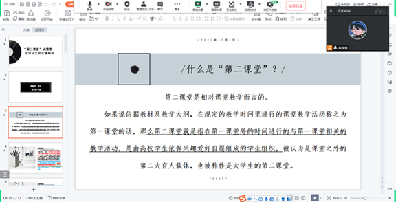 为深入贯彻落实党的教育方针,落实立德树人根本任务,使2022级全体同学更加深入了解第二课堂成绩单制度,工业设计学院团总支组织2022级全体学生进行“第二课堂”学分认定及实施方法主题讲座,此次讲座分别由团总支委员程羽、团总支学生委员助理高俊鹏主持。