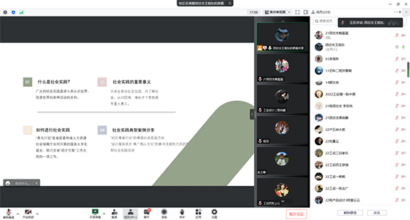 本次主题团课主要从“什么是社会实践?”“为什么参加社会实践”以及“怎样参加社会实践”三个方面进行讲解,最后讲述了实践服务社会的典型案例,分享社会实践的经历与感悟。