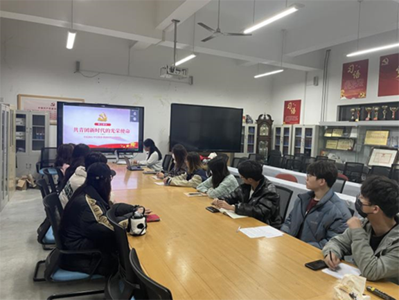 为深入贯彻落实党的二十大精神,激发团员青年爱党、爱国热情,工业设计学院团总支组织新发展团员共同学习二十大有关报告,此次学习由学院团总支副书记李鑫主持。