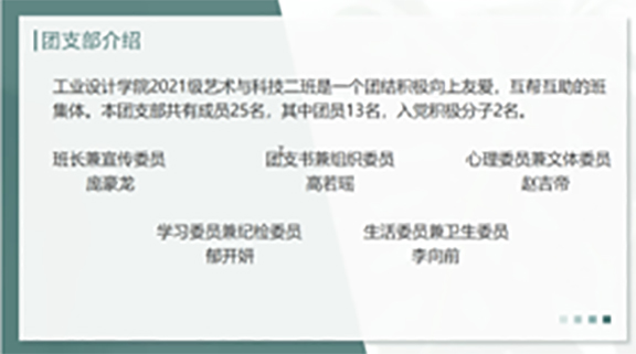此次会议是对工业设计学院团支部建设的年度检阅总结,旨在加强团支部的组织建设,激励各支部书记积极主动作为,更好地推动学院团组织建设发展,以更加求真务实的工作作风,激励各团支部建设取得新成绩、达到新高度。