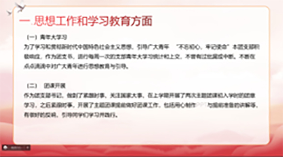 团总支副书记李鑫指出,认真完成基层团支部建设工作,组织开展好各项志愿活动,只是基本工作。本次述职的目的不是为了评星定级,而是为了找到工作不足、明确工作重点,促进和改进团支部的建设;并明确,本次团支部书记述职只是各支部对标定级的参考,学院会从多方面综合考虑和评价各团支部的工作。希望各团支部再接再厉,在下一学年团支部的建设中多多努力,凝聚班级集体的力量,发掘和做好班内积极分子的工作,把学院团支部的工作做得更出色。