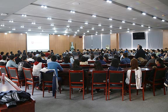 3月18日,数字艺术与传媒学院师生在304am永利集团官网长清校区国际报告厅与美国犹他大学举办学术交流活动,期间作《数字艺术与文化传播》、《动画电影的音乐欣赏》专题讲座。美国犹他大学助理副校长、艺术学院院长雷蒙.泰玛斯-琼斯教授,于天竹总编、董荣璨博士,数字艺术与传媒学院院长顾群业、副院长吴向阳及数字艺术与传媒学院数字媒体艺术专业与动画专业师生一百余人参加此次活动。