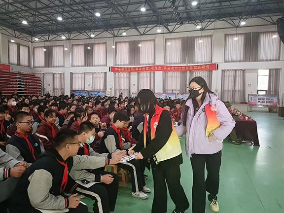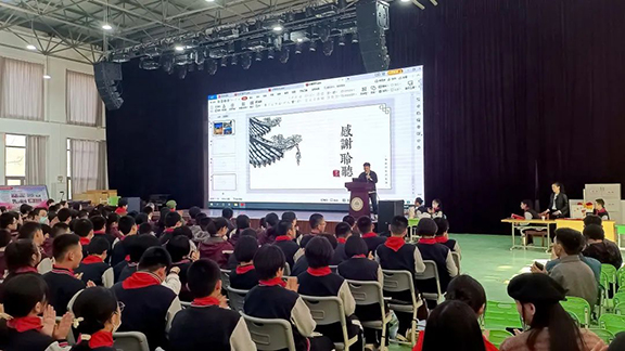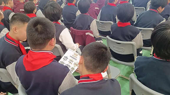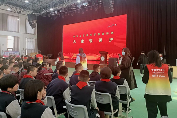 其次,志愿者团队为师生发放关于古建筑的趣味绘画,以图文结合和生动有趣的方式向师生宣传有关古建筑的基本知识。另外,志愿团队代表以PPT、视频资料等方式为学校师生进行了有关古建筑保护的主题宣讲,引导师生要不断加强古建筑保护意识,古建筑保护要从自我做起。