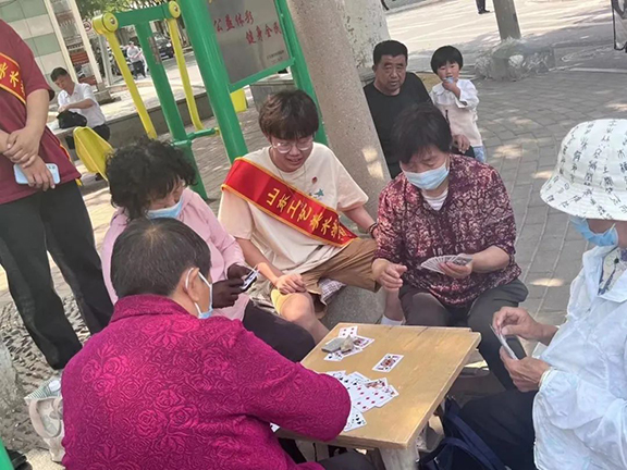 同学们与老年人一对一的交流,陪同他们下棋解闷,了解并记录了他们的生活情况、身体状况和现阶段的需求等实际问题。通过此次活动给老人们带来更多的关怀和温暖,使他们保持乐观健康的生活态度,为社区注入青春活力。同学们的耐心和爱心也都得到了提高,为今后持续开展社区实践活动打下良好基础。