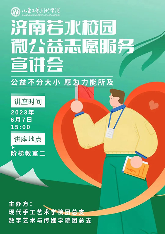 为更好地搭建可持续、有高度参与性和互动性的公益平台,6月7日,现代手工艺术学院团总支联合数字艺术与传媒学院团总支邀请济南若水校园微公益负责人张秀华来永利官网开展志愿服务宣讲会。会议由现代手工艺术学院团总支副书记李遵主持,数字艺术与传媒学院团总支副书记巩珂及学生代表参加。