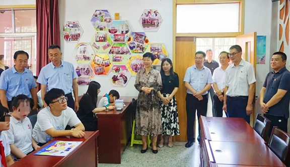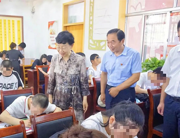 期间,山东省教育厅副厅长孙晓筠与304am永利集团官网副院长韩世春走进课堂,与学生志愿者们一起陪孩子们画画、唱歌,通过亲切的交流互动,了解孩子们的生活和学习情况。