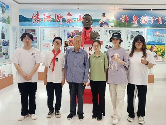 7月11日,师生一行来到李振华事迹展厅,在讲解员的带领下深刻了解李振华老师的重要事迹。“布鞋”校长李振华,17岁离开南京家乡,深入沂源乡村支教,今年是他情洒沂源的第70年。展厅从“青春热血情 志向在沂蒙”、“育人是楷模 治校是专家”、“传播正能量 提振精气神”、“关爱贫困生 圆梦有希望”和“长大后我就成了您”五个板块,向我们全面展示了李老师心怀大爱、躬身奉献的精彩人生。