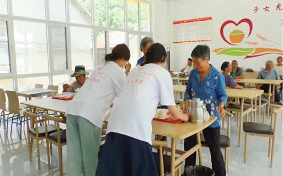 在采访过程中,实践团了解到了“长者食堂”。这是当地专门为60岁以上的老年人提供午餐的场所,自2022年长者食堂开设以来,老人的一日三餐问题得到了解决。老人的午餐补助,由各级财政提供,村内设有公益岗位,工作人员为腿脚不便的老人提供上门配送服务,有效充实了长者食堂的服务力量。了解过后,实践团主动加入志愿服务队,为爷爷奶奶打饭端饭,并与老人们愉快交谈,青年志愿者用自己的实际行动践行了奉献、关爱、互助的志愿服务精神,给老人们送去了来自社会大家庭的关心与温暖。