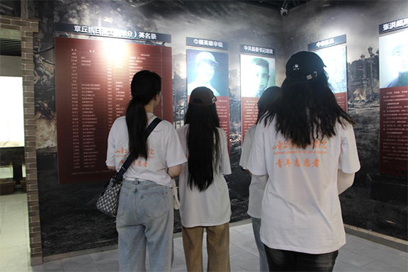 (实践团在济南市章丘区三山峪村章丘第一支抗日武装纪念馆学习调研)