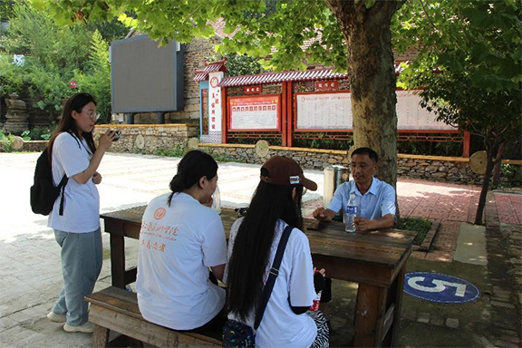 (实践团成员与临沂市沂水县院东头镇四门洞村支书交流)