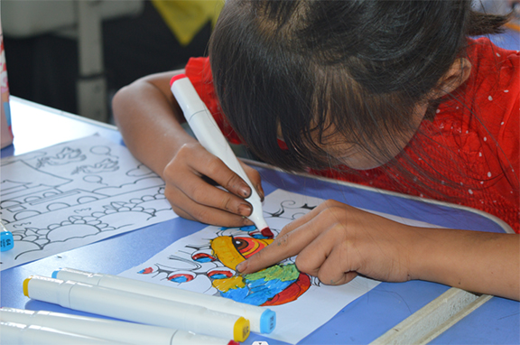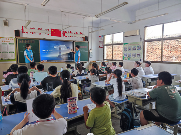 在主题绘画课堂上,志愿者们以“两弹一星”精神为主题,带领小朋友们一起描绘“核”的世界,感悟艺术与科学的魅力。在爱国主义教育课堂上,小朋友们学习党史知识,领悟红色文化。