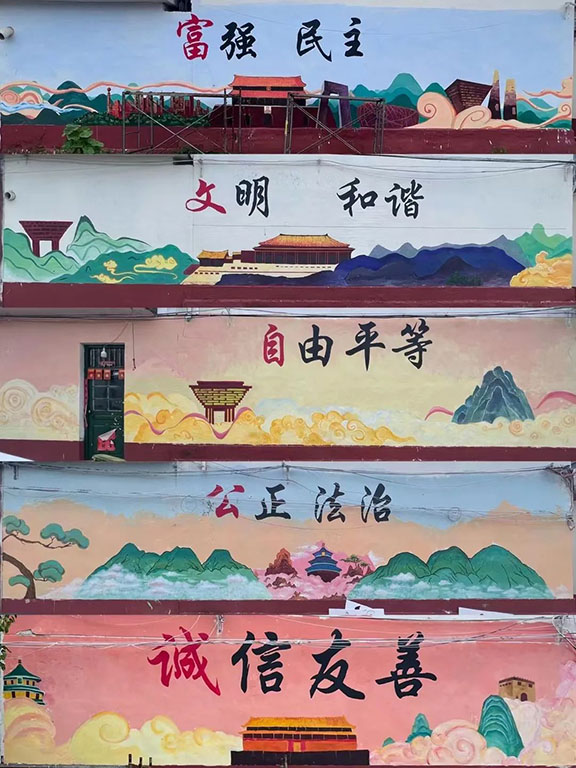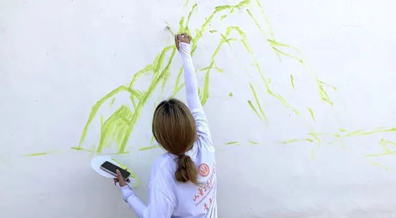 本次实践活动以乡村文化墙绘为主要任务,同时开展驻村入户体验式“四同”教育,旨在同吃、同住、同劳动、同学习中真切感受乡村振兴变化。实践期间,志愿者利用专业特长有条不紊地对墙面进行创作,不论是炎炎夏日抑或是狂风暴雨都从未消弭志愿者们的热情,他们用颜料将社会主义核心价值观与中国大美山河景色相融合,把心中之意化为笔下之文,用手中的画笔为埠口村的墙面增添一份色彩,不仅彰显出新时代乡村文化的时代内涵,形成积极向上、健康文明的道德风尚,更让志愿者们在理论与实践的紧密结合中体悟出劳动的意义。