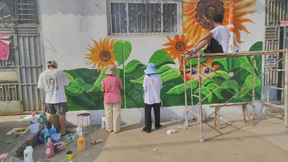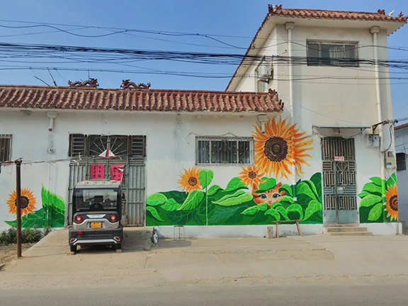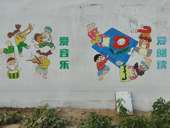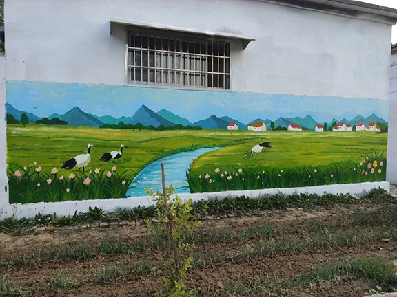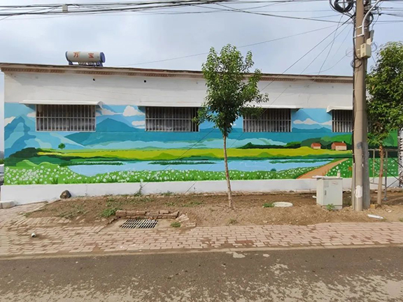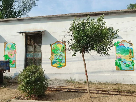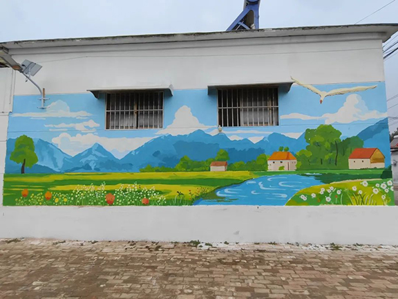 团队成员通过前期实地考察并结合当地意愿,实行一墙一文化的构思,根据所在片区以及当地特色完成了主题选择以及画稿绘制工作,将乡村当地风景民俗、二十四节气的相关元素融入画稿。
