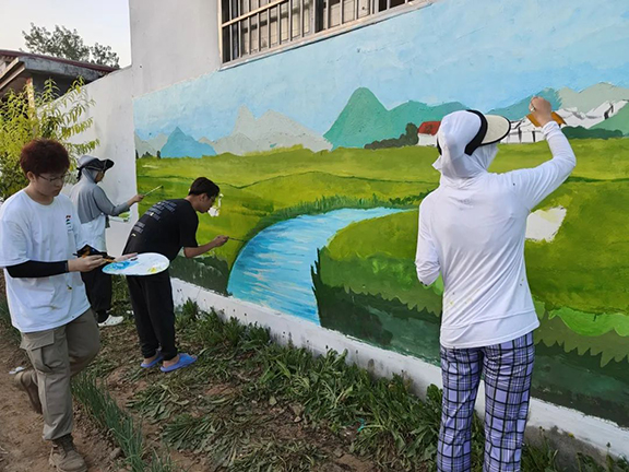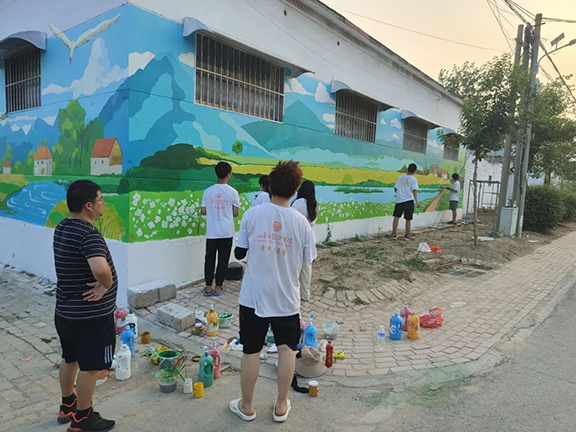 为深入学习贯彻习近平新时代中国特色社会主义思想主题教育,贯彻落实习近平总书记关于实施乡村振兴战略的重要指示精神,推进美丽乡村建设,切实帮助改善乡村人文人居环境。7月6日至13日,304am永利集团官网视觉传达设计学院“妙手丹青”美丽乡村志愿队积极响应暑期“三下乡”社会实践的号召,发挥学院品牌特色,践行立德树人根本任务,引导学生树立家国情怀与社会责任意识,将艺术设计融入乡村文化振兴,赴聊城市阳谷县刘李新村积极开展“墙绘进乡村”暑期社会实践。