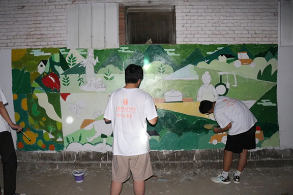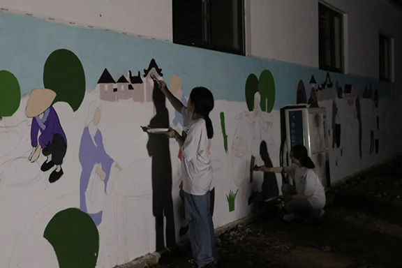 本次主题墙绘社会实践活动为期一周,队员们齐心协力,分工合作,表现出强烈的集体荣誉感,展现了新青年的担当。在整个过程中,队员们克服炎热、早起、夜间灯光条件不足等重重困难,充分发挥个人特长,无论是起稿、填色,还是最后的精细加工,都拿出百分的干劲,将秀丽的景色、美丽乡村农耕文化、丰富的生活记述于墙上,绘出多彩而充满活力的美丽乡村。