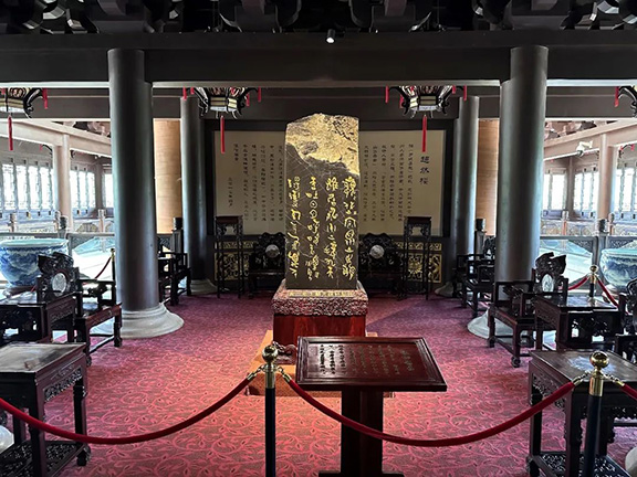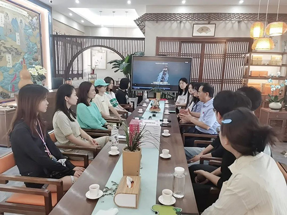 座谈过程中,调研团成员详细了解大明湖发展历史、相关传说,同时对大明湖人文景观和历代主要文人及有关大明湖的主要作品有了全新的认识。座谈结束后,在工作人员陪同下,调研团队走进了被誉为“江北第一楼”的超然楼,超然楼上下共七层,铜瓦、铜栏、铜门、铜柱,有“超然铜瓦金”之说,是一座拥有几百年历史的名楼。楼内展品丰富,包括高达8米的“江北第一木雕”、传承近百年的“万马奔腾”,以及上世纪五六十年代山东书画界领袖人物的真迹和极其珍贵的古老拓片。超然楼不仅气势宏伟、灯火绚烂,更是承载着济南的泉城底蕴。