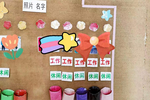 课程一:带领小朋友做各种训练项目,并对小朋友进行及时有效治疗调整。在DIY治疗室和个人工作治疗室,我们根据不同孩子的恢复情况帮助指导孩子们将积木、雪花插片等玩具根据一定的颜色排列组合起来,当孩子们出现困惑不知道是哪种颜色进行拼接时,会引导他们进行拼接。