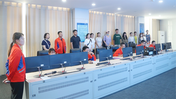 实践队队员乘上基地观光车。伴随着讲解员的细致讲解,我们参观并了解了石油加工运输的全过程。随后来到天弘集团的中控室,映入眼帘的是一排排整齐有序的工位,身着统一服装的工作人员无微不至的操作着眼前的机器,石油的全方位利用离不开他们日复一日的细致工作。最后在指引人员的带领下,同学们进入天弘集团的智能制造工厂,屏幕上展现出的信息井然有序,宛若一枚枚优雅的音符,演绎着天弘集团的历史与未来,同学们无一不被自动化智能化的加工监控技术所震撼。