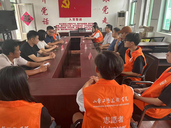 参加活动的有美术史论教研室主任王付银老师、教研室刘允东老师、赵晟老师、石胡同管理区书记郝庆宝、孙东村书记张德杰也来到现场进行勘察指导共同参加此次活动,感谢他们结合基层经历,案例分享,以及对孙东村整体的介绍。这些鲜活的讲解为服务队全面理解乡村振兴提供帮助。
