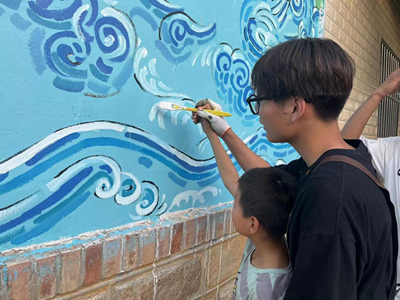 另外绘制时,服务队同学注重与村民交流,不断沟通颜色和他们的喜好,并鼓励村民一起涂色,邀请村民共绘村庄,给与村民大胆尝试的机会,也肯定村民的“画技”,邀请村民一起践行乡村美育行动。此次暑期社会实践活动不仅为万德街道美丽乡村贡献青年力量,同学们更是上了一节生动的社会实践课。