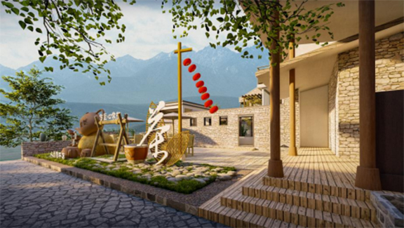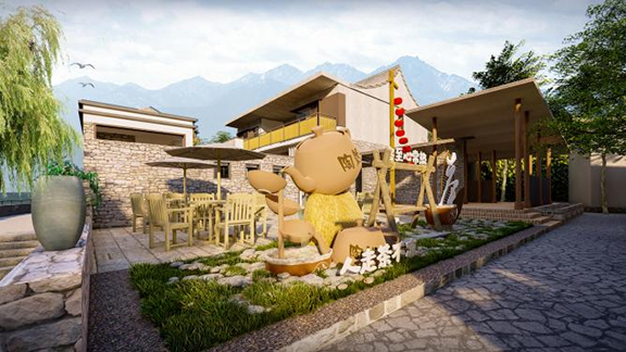 在民宿周围设置茶室,供客人品茶和体验茶道。茶室的设计遵循传统的茶室布局和装饰,如竹制的茶具、茶道具和茶具展示架等,以展示茶道的仪式感和美学。在民宿的外墙或室内空间中加入茶文化的艺术装饰,如茶叶的图案、茶道的插画或茶具的摆设等,以增加茶文化的氛围和美感。