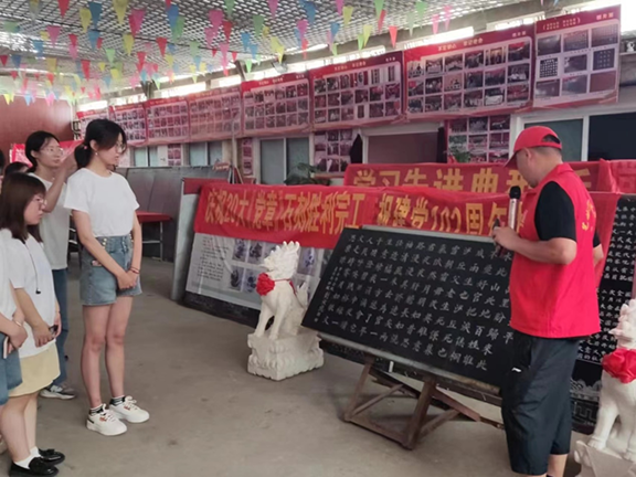 在李夫振代理馆长的讲解带领下,“寻源溯流,青春纪行”党史学习教育团参观了展馆内的所有展区,在这个由碑林构筑起的文化传承和红色教育的基地领会了传统文化、红色经典的无限魅力。