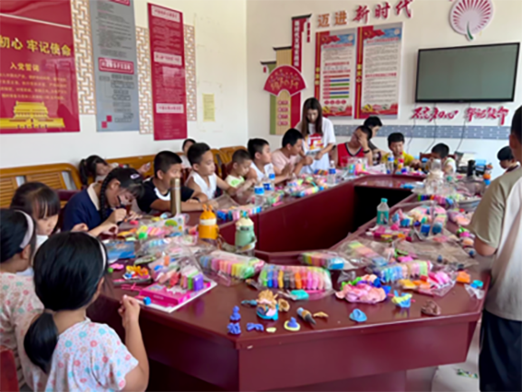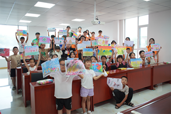 团队成员在“文化传承”课堂上结合滨州实际,以黄河文化为切入点,带领孩子们通过了解黄河基本知识、感受黄河二十四节气变化、了解黄河衍生文化与艺术,进一步领略中华民族母亲河为黄河沿岸带来的丰厚精神遗产。“艺术素养”课堂上,团队成员带领孩子们编织吉祥结、用彩泥塑造各具特色的造型等。通过制作创意手工艺品,让孩子们切身感受中华优秀传统文化创造性转化、创新性发展的意义,体悟“山东手造”的魅力,增强对传统手工艺等非物质文化遗产的文化自信。团队成员发挥自身艺术素养,将绘画的理论与实践相结合从专业的角度讲授绘画课程,引导孩子们尝试运用不同的造型表现方法表达思想与情感,大胆地彰显个性、画出自我。
