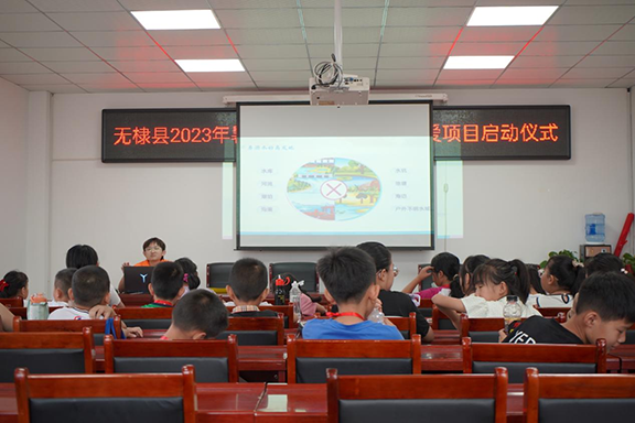 团队于前期围绕“文化铸魂,设计润心”主题,撰写教案、认真备课、展开试讲、制作课表、备足教具、采购捐赠物资等,临行前举行了出征仪式,重申要点、清点用具、发放队服、授予徽章和旗帜、郑重宣誓,整装待发,为切实开展好志愿服务活动做好充分准备。在无棣县2023年暑期“滨滨学堂”儿童关爱项目启动仪式上,县委副书记杜珂勉励队员们发扬革命加拼命的精神,拿出实干加苦干的行动,踔厉奋发、勇毅前行,热情服务、倾情奉献,用实际行动努力在无棣这片热土上挥洒青春,实现人生价值、成就人生梦想。