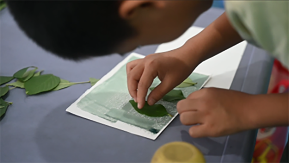 “印象技艺”课堂以“阳光下的艺术”——蓝晒课程为主要呈现方式。团队成员充分发挥所学的摄影专业特色,将古老的印刷原理以故事形式生动地呈现给孩子们,指导他们认真配制药剂,发挥丰富的想象力,创新地在帆布袋、水彩纸上勾勒出多样的形状。随着美丽的蓝色图案在阳光的照射下慢慢显现,孩子们制作出了一件件独一无二的蓝晒作品,感受到了阳光与自然植物交相辉映,用太阳定格自然的美好和成为大自然的摄影师的快乐。