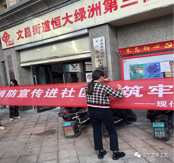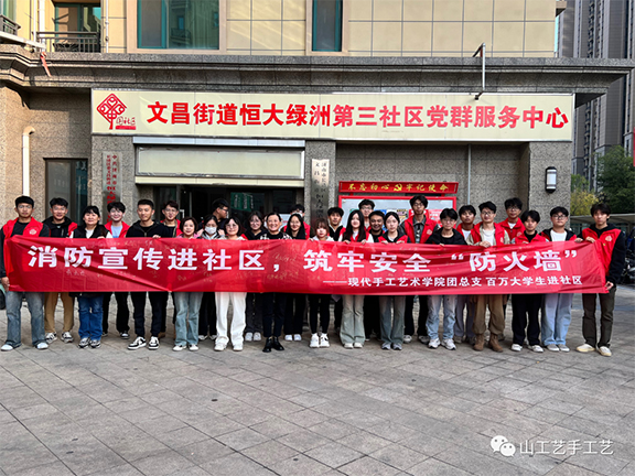 为深入学习贯彻习近平新时代中国特色社会主义思想和党的二十大精神以及习近平总书记关于青年工作的重要论述,落实团省委“百万大学生进社区”社会实践活动要求,增强大学生实践能力和责任意识。在第32个全国消防日来临之际,现代手工艺术学院团总支组织青年志愿者赴恒大绿洲社区开展“消防宣传进社区,筑牢安全防火墙”主题团日活动。