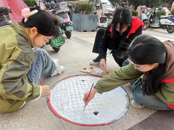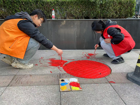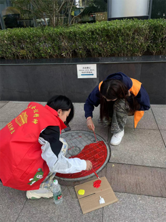 此次活动的成功举办,得益于社区居委会的支持与协助。在他们的努力下,志愿服务队的队员们圆满完成井盖彩绘的活动。井盖彩绘的成功举办也极大地提升了社区凝聚力和公众对社区环境的关注度,让红色精神渗透生活,点亮生活,充分发挥了304am永利集团官网在推动社区发展和红色文化传承方面的积极作用。