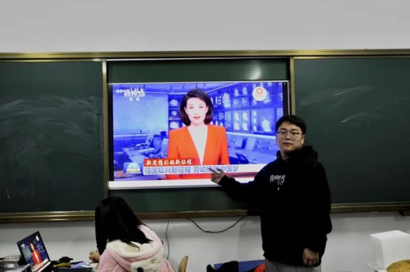 首先,同学们一起观看了强国复兴系列短片,短片以宁波舟山港建设、永定河大桥建设、甘肃八步沙林场植树造林工作、广西西部陆海新通道建设等工作为例,向大家讲述了劳动是强国复兴的必由之路。