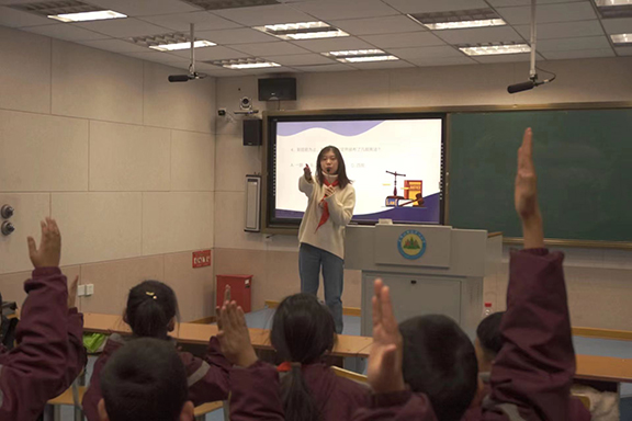 活动中,志愿者通过幻灯片和视频的形式向小学生们介绍了宪法的相关知识。为了调动他们的积极性,志愿者设置了有奖问答互动环节,互动中,同学们纷纷踊跃举手回答问题,气氛活跃,效果良好。志愿者还带领小学生们进行宪法宣誓,在一声声庄严的誓词中,同学们立志做热爱祖国、热爱人民,遵守宪法法律的社会主义建设者和接班人。