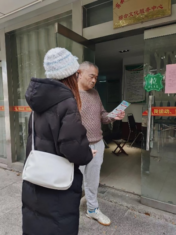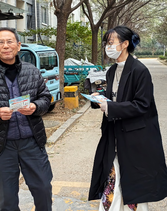 聚焦安全出行的重要性,文化产业管理班团支部来到社区内部开展“一盔一带,安全出行”志愿宣讲活动,通过发放宣传单向辖区居民讲述不戴安全头盔、不系安全带引发的典型交通事故案例,并具体结合身边案例为社区居民细致分析了“戴与不戴”“系与不系”的利害关系。同学们的志愿宣讲为打造绿色文明社区贡献了青春力量,得到了社区居民们的高度赞扬。