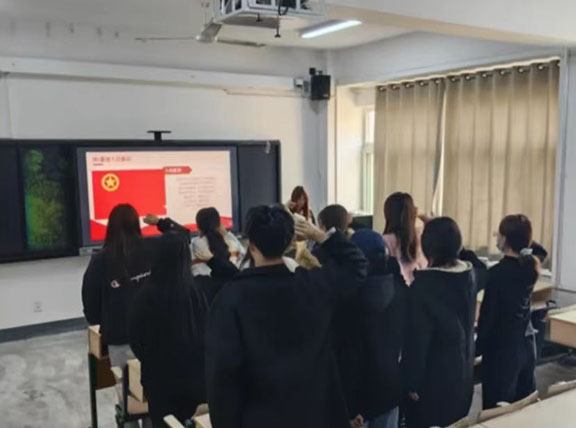 团支部书记带领全体团员重温入团誓词,以此提醒每位团员应牢记自己的身份和担当,时刻严格遵守组织纪律,强化组织观念和纪律意识,进一步增强团支部的向心力和凝聚力。