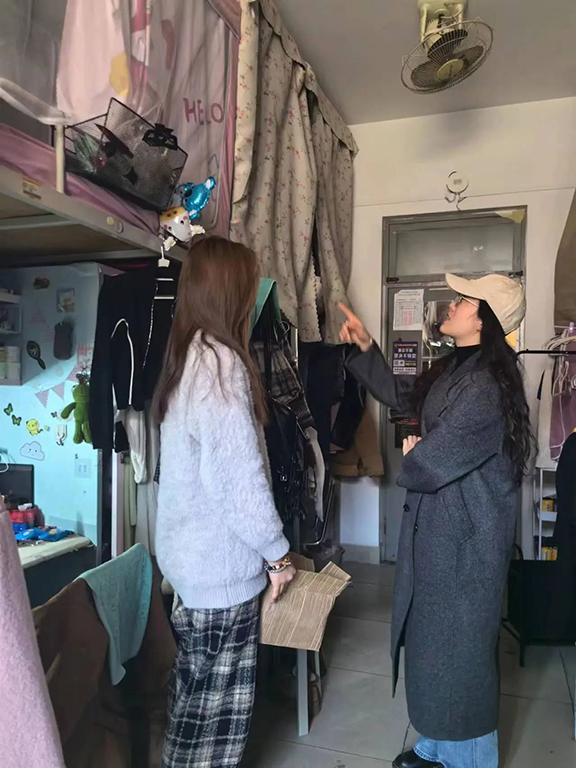 最后,辅导员刘怡宏老师强调新学期伊始,要好好把握入党入团机会;关于请假问题一定要走正规流程。最后,引导学生新学期以积极的心态面对新挑战,缓解内心焦虑。另外,辅导员还深入宿舍了解学生的真实需求,掌握学生返校的“第一手资料”。