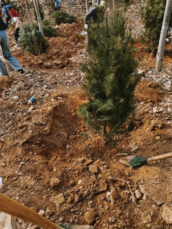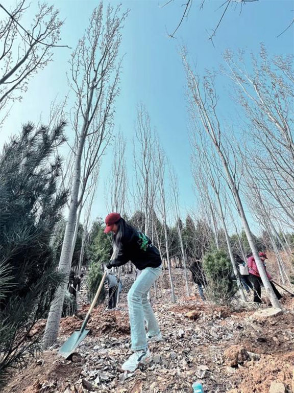 涓涓细流汇聚磅礴之力,棵棵树苗谱写时代新章。挥锹铲土,扶木正枝,提桶浇水……参与植树的青年志愿者身穿志愿马甲忙碌在河岸两旁。放眼望去,一片热火朝天的劳动景象,志愿者们分工有序、配合默契,将一株株白皮松树苗认真地栽植在黄河淤背区内。春风抚绿,草木初萌,青年与树苗一起扎根于此,为黄河流域生态保护和高质量发展厚植生态底色。
