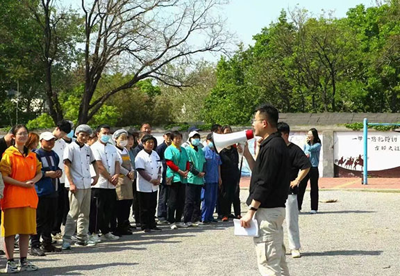 应急疏散演练前,保卫处李训一从国家公共安全、消防安全和紧急避险等方面给学生进行培训,让大家了解消防应急疏散演练的重要性和快速逃生的方法以及安全注意事项。