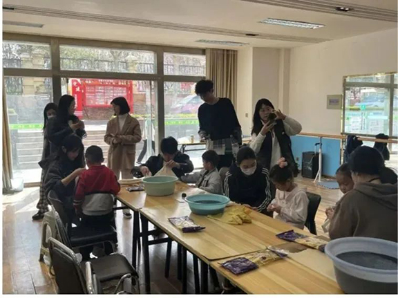 为弘扬中华优秀传统文化,提高青少年对传统非物质文化遗产的认知,使非遗文化在他们心中生根发芽。4月13日,结合园博园社区“青少年周末公益课堂”活动,服装学院团总支组织2021级表演班团支部开展了非遗扎染教学与体验活动,助力少年儿童文化素养的陶冶。